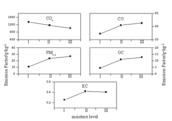 . 不同水分含量(10%,28% 50%)下秸秆露天燃烧的含碳物质排放因子